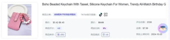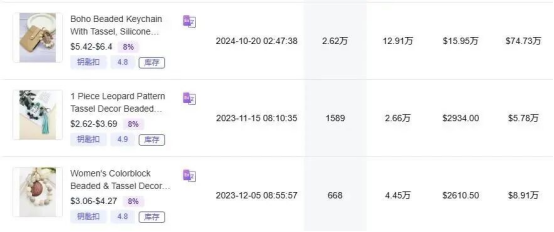 设计审美上,钥匙扣还牢牢抓住 Z 世代喜好。马卡龙色系串珠是 TikTok 年轻女性钟爱的 “柔和亮色”,流苏元素又适配欧美流行的“波西米亚休闲风”,使其既是实用的卡包,又是能点缀穿搭的时尚配饰,精准贴合平台“穿搭小物”的流量趋势。
