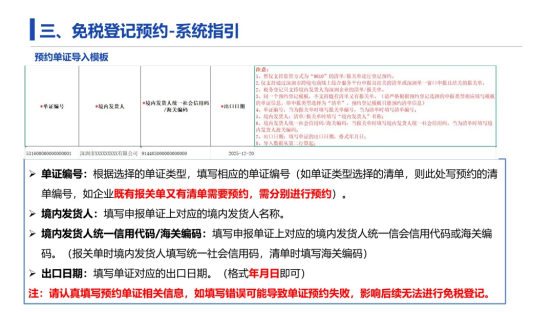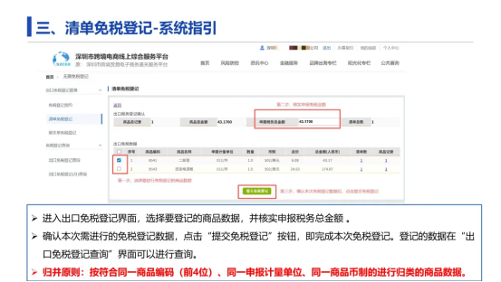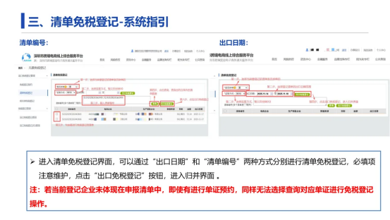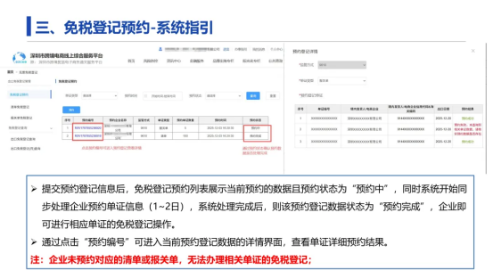 ②登记预约 1~2 日后,根据预约单证数据再进行报关单/清单的免税登记。