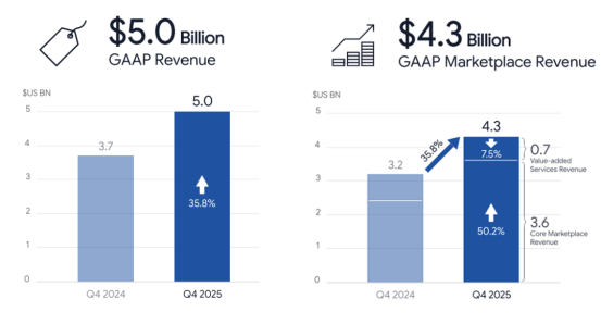 · 交易手续费、广告业务成为重要盈利点,核心市场收入达 36 亿美元,同比大涨 50.2%。