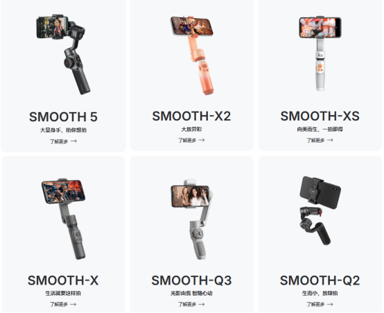技术护城河越挖越深。其自主研发的第十代蜂巢稳控算法与磁钢电机技术,精妙地平衡了动力输出与能源损耗,CRANE 3S 更是凭借 6.5kg 的峰值荷载,成功征服了专业级摄影设备市场。而在大众消费端,SMOOTH-X 系列通过极简的轻量化结构,将体感重量降低了 40%,大幅降低了普通用户的创作门槛。