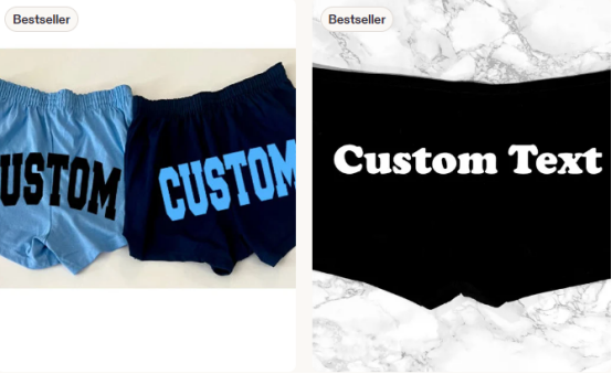 信息显示,这款 Etsy 爆款的核心卖点,正是在于用户可以在短裤的臀部区域添加自定义文字、姓名、标语,甚至进行个性化的情趣言语刺绣或喷绘。