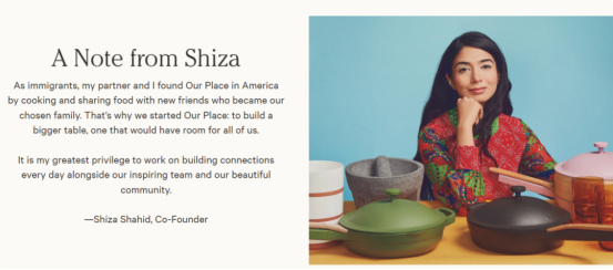 创始人 Shiza 本人早年从巴基斯坦前往斯坦福求学,之后先在麦肯锡工作,又与马拉拉共同创立了 Malala Fund,长期关注社区与文化议题,这种社会使命感也被她带入了厨具品牌的打造中。