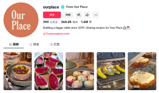 与此相对应,Our Place 品牌自营 TikTok 账号的定位并非强销售,而是更偏向于内容场景和品牌形象建设。