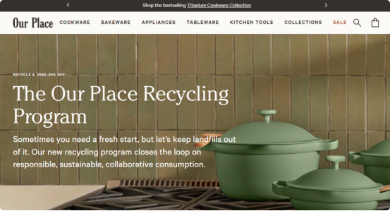 作为贡献 95% 销售额的主阵地,Our Place 品牌的独立站不仅仅是一个下单工具,更是一个沉浸式的品牌体验中心。